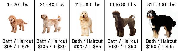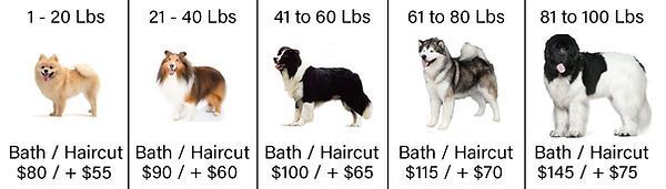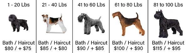 * Groomers reserve the right to adjust prices based on coat length, condition, or type of haircut requested. Dematting is not included.